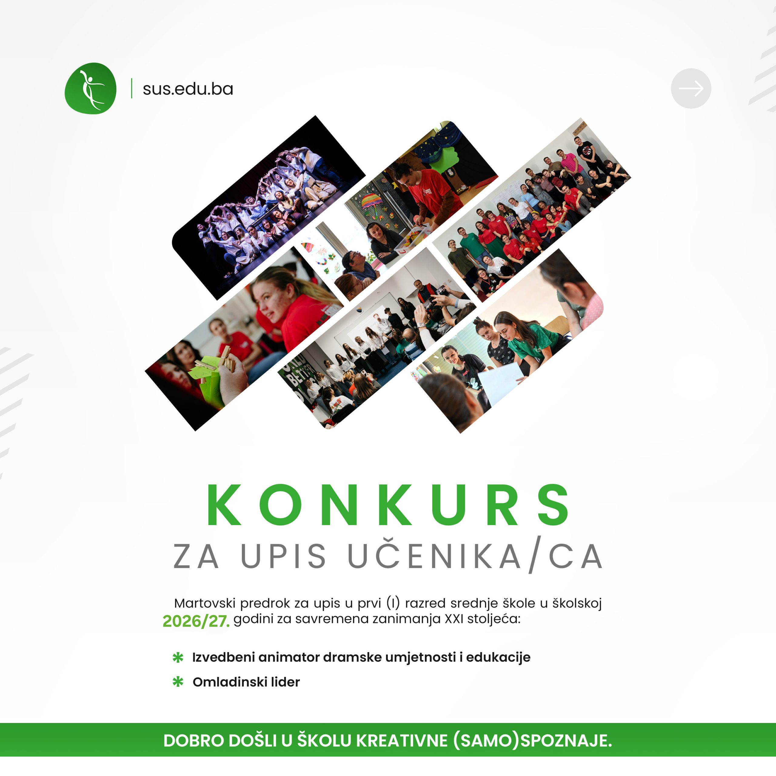 Konkurs za upis učenika/ca u prvi razred pete generacije Savremeno-umjetničke škole u martovskom predroku za školsku 2026/2027. godinu.